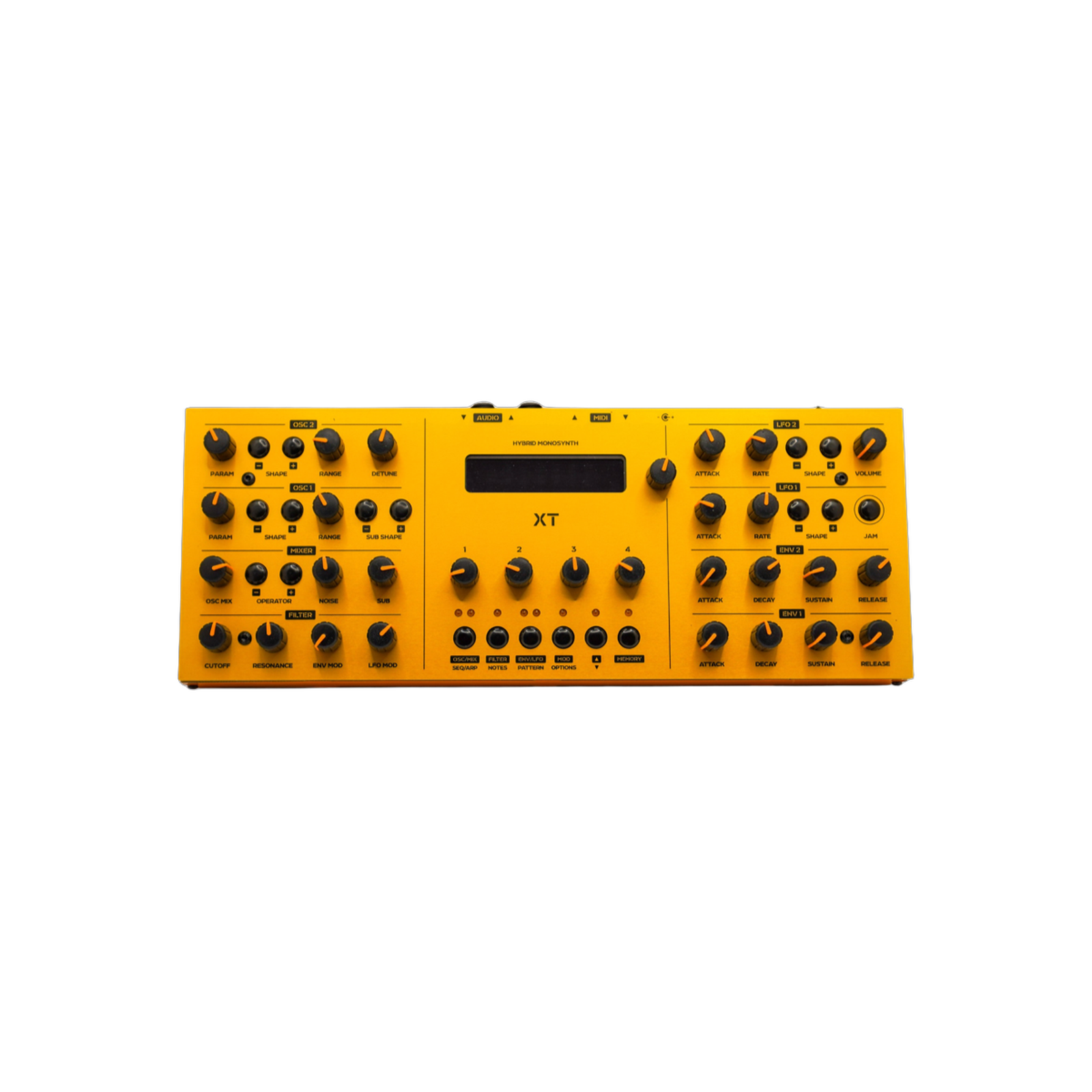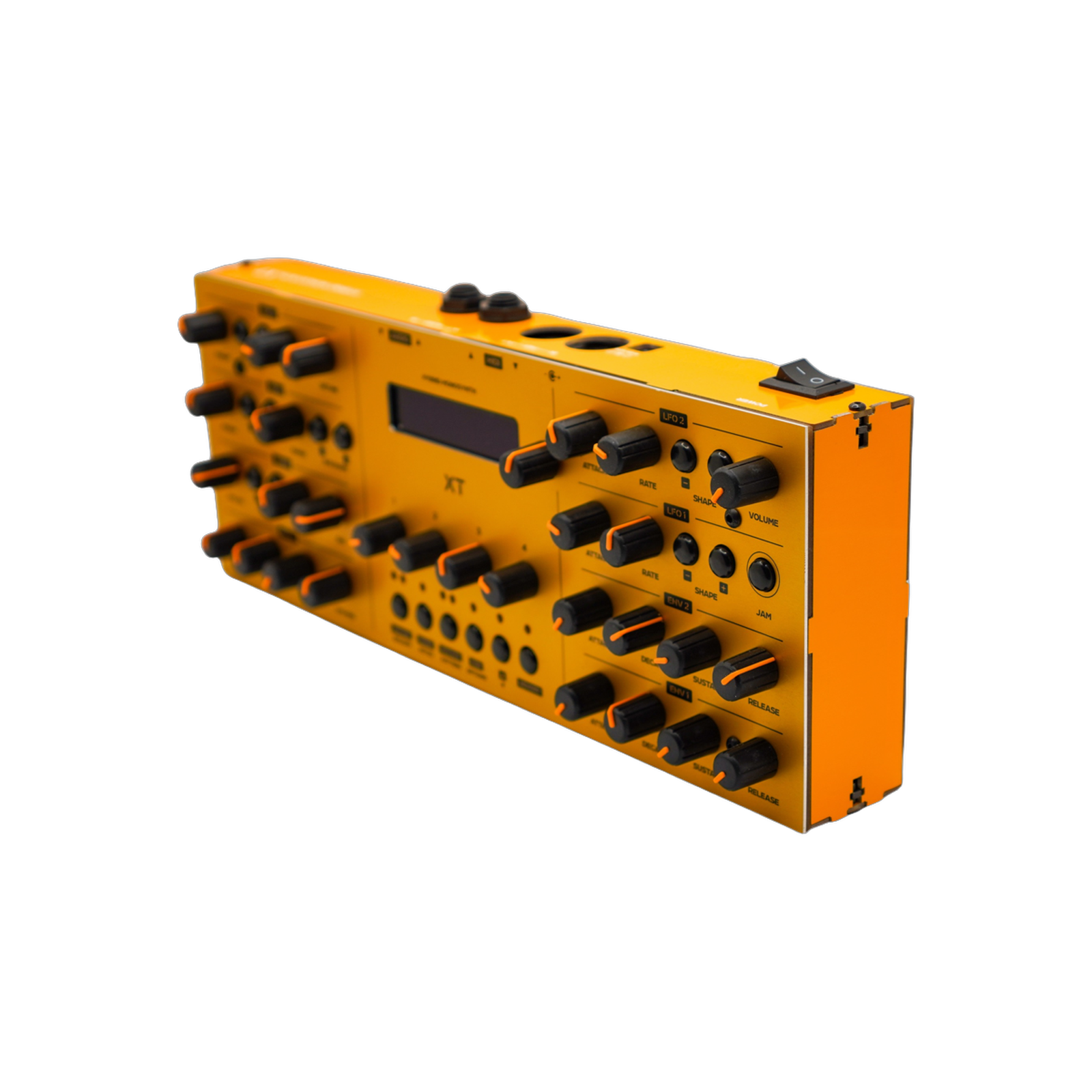 The Shruthi XT is a popular hybrid monosynth developed by Mutable Instruments. It features a digital oscillator and an analog 4-pole filter, making it capable of producing a wide range of sounds. The XT version is essentially the same as the Shruthi-1, but with most controls moved to the surface for easier access.