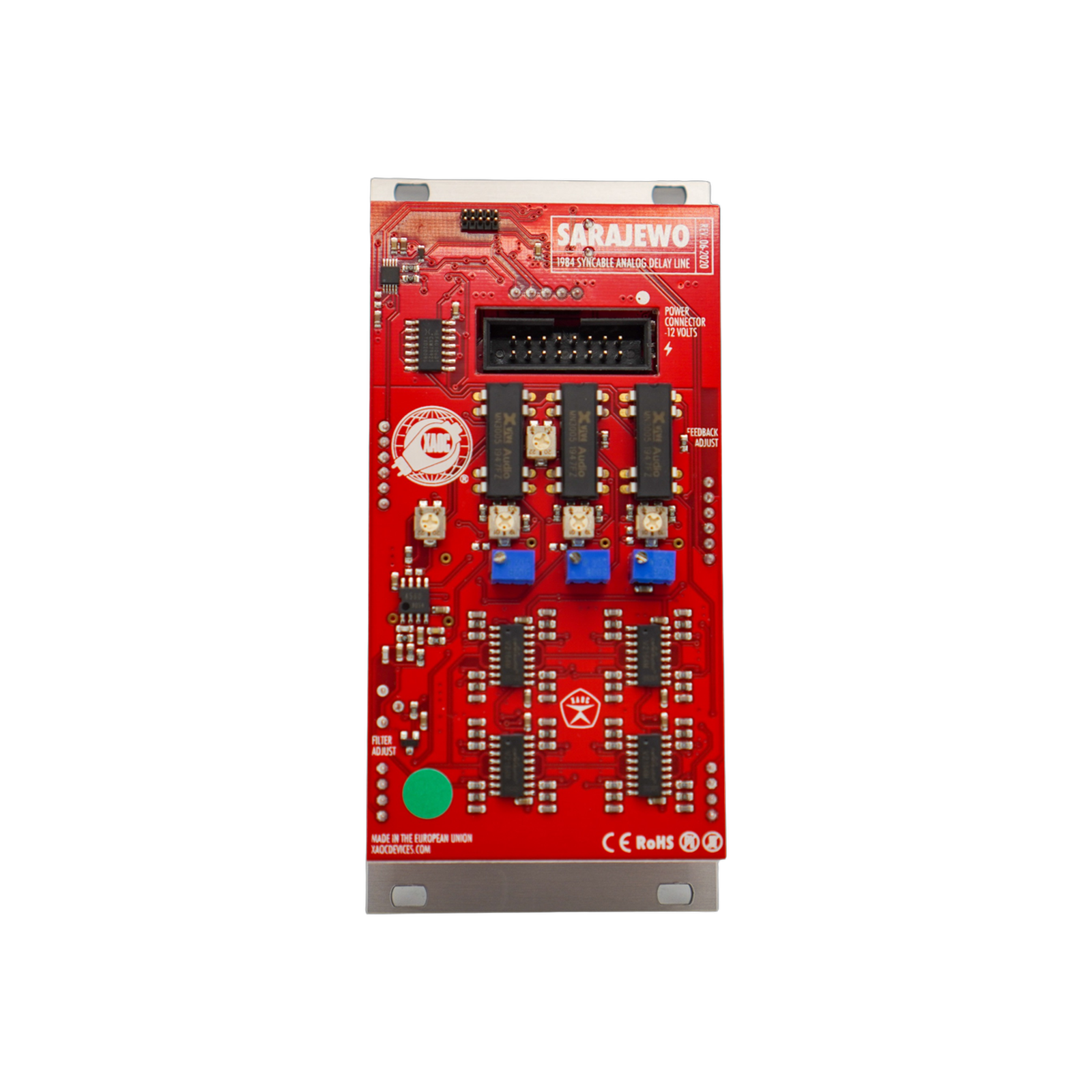 Effects Effects Clear All Sound sources VCAs and LPGs Modulation, EG and Logic Effects Filters Mixers, Outputs, Interfaces Sequencers Utilities Blank Panels Cases, cables and misc DIY Preorder Filters Categories All Sound sources VCAs and LPGs Modulation, EG and Logic Effects Filters Mixers, Outputs, Interfaces Sequencers Utilities Blank Panels Cases, cables and misc DIY Preorder Filter Clear Filter Luna Eurorack version by Neutral Labs - Logical unbound synthesizer €555.00 Disting MK4 by Expert Sleepers - Multi-Function Module €156.00 Sold Out Arbhar v2 by Instruo - Granular Processor €578.00 Veno-Orbit by Venus Instruments - Polyphonic Sampler €503.00 Sold Out Cortisol Legend by Herzlich Labs - Germanium Saturation and Distortion Effect €150.00 Optika VCA by Herzlich Labs - Dual Vactrol-based Optical VCA with Overdrive Sale Price: €104.40 Original Price: €116.00 Sale Vinia by Tesseract Modular - Audio generator and effects processor €400.00 Inga by Knob Technology - 7-stage Wavefolder €155.00 Sold Out Scrooge Eurorack version by Neutral Labs - Sequenced malfunction generator €550.00 Elmyra 2 White Eurorack version by Neutral Labs - Digital/analog hybrid synthesizer €528.00 Nebulae v2 by Qu-Bit Electronix €469.75 Dual Ring Modulator by Stoel Music Systems - Two ring mods with a dual mode ring/multiply feature €118.00 Nijel by Neutral Labs - User customisable distortion €134.00 Sold Out Dual Rectifier (DIY) by Black Noise €45.00 Veno-Echo by Venus Instruments - Stereo Syncable Delay €350.00 Sold Out Elmyra 2 Eurorack version by Neutral Labs - Digital/analog hybrid synthesizer €528.00 AGNI by Knob Technology - VCA and multi-FX unit €155.00 Sold Out Micro HWR by Herzlich Labs - Dual Passive Bipolar Half-Wave Rectifier €46.00 Athrá by Bizarre Jezabel - dual tape delay emulator €232.00 Sold Out FM AID_BLACK by Happy Nerding - Through-zero linear FM €130.00 Sold Out Sarajewo by Xaoc Devices - Syncable Analog Delay €368.00 Sold Out Kamieniec by Xaoc Devices - Analog Resonant Phase Rotator €217.00 Sold Out Black Stereo Delay by Erica Synths €310.00 Sold Out Koszalin by Xaoc Devices - Stereo VC Frequency Shifter €276.00 Sold Out Dual Rectifier by Black Noise €51.00 Sold Out Dual FX by Erica Synths €245.00 Sold Out Distress by Hexdevices - Distortion €84.00 Sold Out Chloe V3 by Bizarre Jezabel - Tube Overdrive, Delay, MultiMode Filter €257.00 Sold Out VCO's Little Helper by Takaab (Siam Modular) - Ring Modulator, Sub Oscillator, Noise €122.00 Sold Out D308 by Takaab - Vintage Distortion €70.00 Sold Out Anomaly by Noise Reap - VCF with Wavefolder €101.00 Sold Out Pkhia by Bizarre Jezabel - dual/stereo mmf filter & vca €219.00 Sold Out Mimosa Stereo 8hp by Bizarre Jezabel - Stereo Tube Saturator €222.00 Sold Out Stereo Compressor by Erica Synths - Stereo compressor with sidechain €170.00 Sold Out Ooots by Knob.farm - Master Output with EQ and Saturation €201.00 Sold Out Timiszoara by Xaoc Devices - 1970 Voltage Controlled DSP Effektor €301.00 Sold Out Lila by Bizarre Jezabel - Mono Tube Saturator €127.00 Sold Out Tallin by Xaoc Devices - Dual VCA with Overdrive €141.00 Sold Out Chloe Mono mk4 by Bizarre Jezabel - Tube Overdrive, Delay, MultiMode Filter €219.00 Sold Out Vacuum Tube Ring Mod by Stoel Music Systems €178.00 Sold Out Spring Reverb by Stoel Music Systems - Spring reverb with external feedback loop €123.00 Sold Out FX AID (multi-effects unit) by Happy Nerding €167.23 Sold Out FX AID XL by Happy Nerding €200.00 Sold Out Data Bender by Qu-Bit Electronix €352.10 Sold Out Aurora by Qu-Bit Electronix €351.26 Sold Out Fx Aid Pro by Happy Nerding - Multiple audio effects €285.70 Sold Out Mojave by Qu-Bit Electronix €377.31 Sold Out Black Hole DSP 2 by Erica Synths €250.00 Sold Out Chloe Stereo Inside Tube by Bizarre Jezabel - Tube Overdrive Delay & MMF Filter €315.00 Sold Out Mimosa mk2 by Bizarre Jezabel - tube dual/stereo saturator €222.00 Sold Out Nuts by Neutral Labs - Preset cards for Nijel or Elmyra 2 €18.00 Sold Out Nautilus by Qu-Bit Electronix €377.31 Sold Out FX AID 1U black by Happy Nerding - Multiple Audio Effects €167.23 Sold Out Blossom by Bizarre Jezabel - Three Linked Filters €324.00 Sold Out Favorite Avocado Toast by Crazy Chicken - Low-Pass filter with Overdrive €240.00 Sold Out No results found No results match your search. Try removing a few filters.