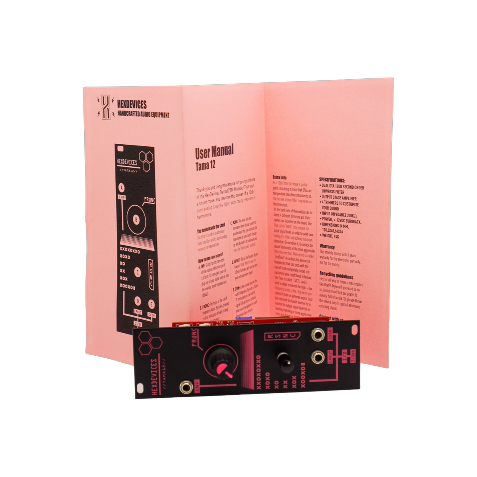 The resonance gets wild, but doesn’t self oscillate or run away. It is pingable, but on its own terms. Pinging the low & high outs are good for quick percussive blips. Pinging the BAD output creates abrasive techno kicks.