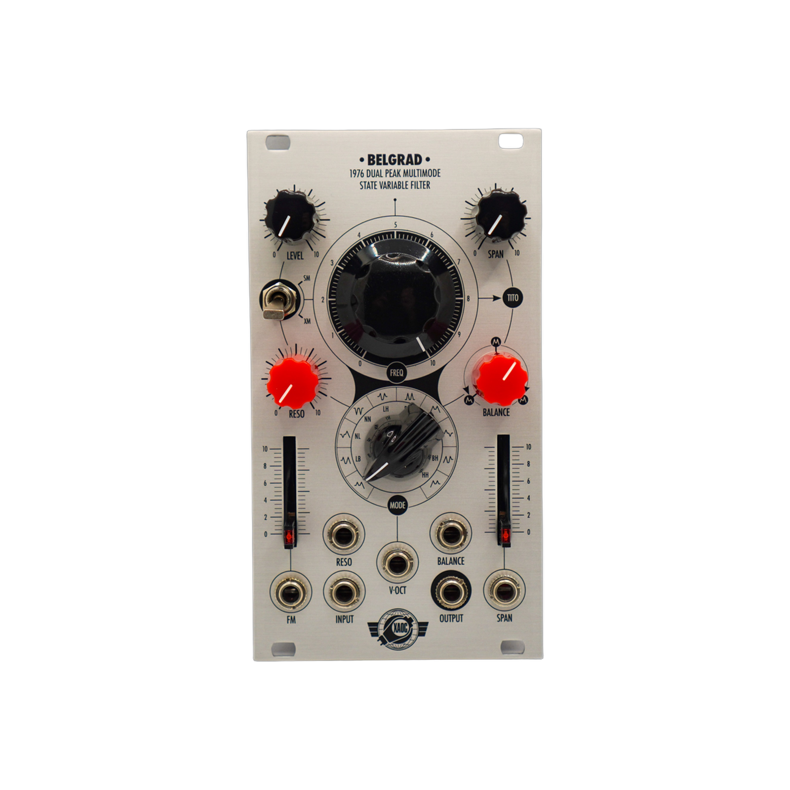 The Belgrad is Xaoc Devices' first all-analog voltage-controlled filter module. While it can be used as a traditional VCF for subtractive synthesis, it also offers unique features and flexibility for exciting timbral explorations. The most prominent feature is its ability to offer multiple frequency responses with two resonant peaks.